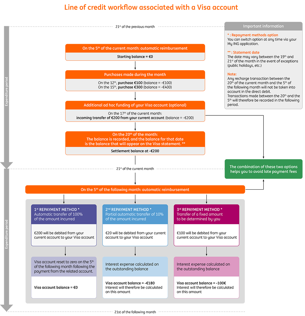 If you have a much larger one-off expense, you simply top up your Visa account (or "top up your Visa card") via a simple account-to-account transfer. You can then use your card immediately.