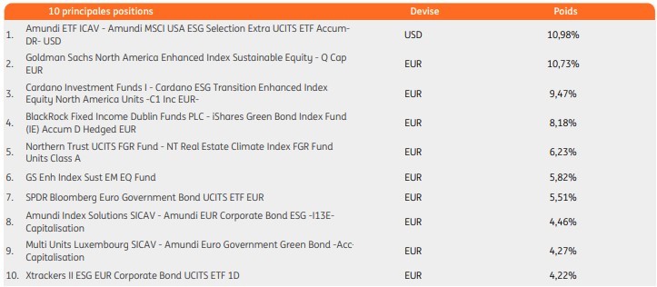 L’objectif du compartiment consiste à obtenir une exposition aux actions/titres assimilés de tous secteurs et aux obligations/instruments du marché monétaire en investissant dans des parts d’OPCVM ou d’OPC qui sont essentiellement des ETF ou autres fonds indiciels conformes à l’Article 41 (1) (e) de la Loi de 2010 ainsi que dans des liquidités et équivalents de liquidités.